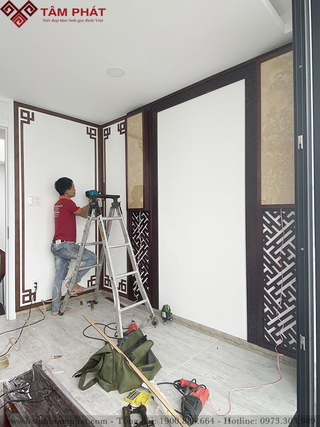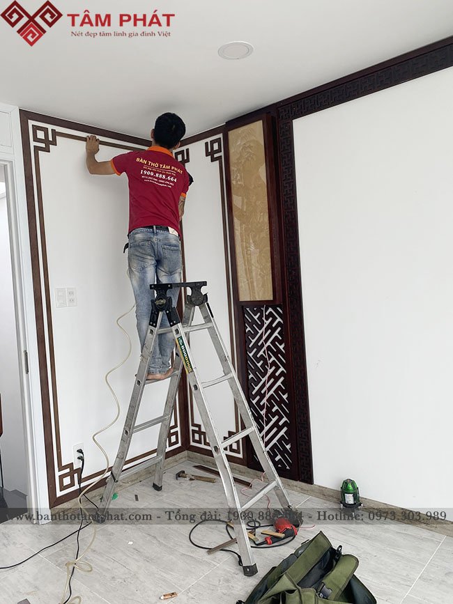 Bàn thờ Phật và gia tiên mẫu BT-1129 được nhân viên Tâm Phát thi công từng bước rất cẩn thận, những chi tiết nhỏ lại yêu cầu kỹ thuật rất cao mới có thể thi công chính xác từng ly.